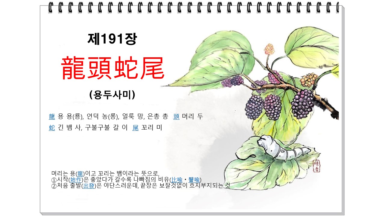 오늘은 '용두사미' 로 ' #교훈 ' 에 관한 한자성어 입니다. '꼭' #한자쓰기 도 공부하시기 바랍니다.