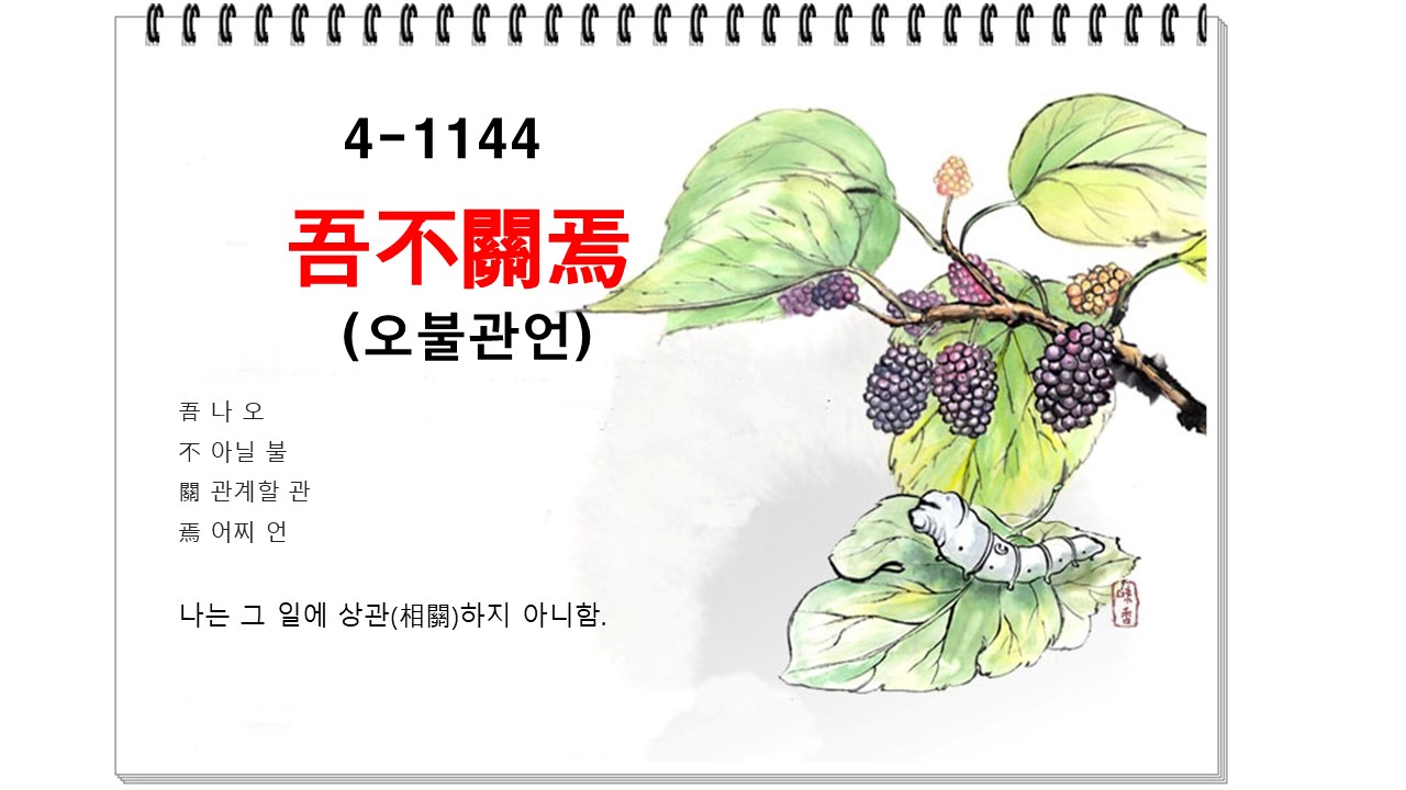 오늘 배울 내용은 '吾不關焉' ' #기타 ' 에 관한 한자성어입니다.