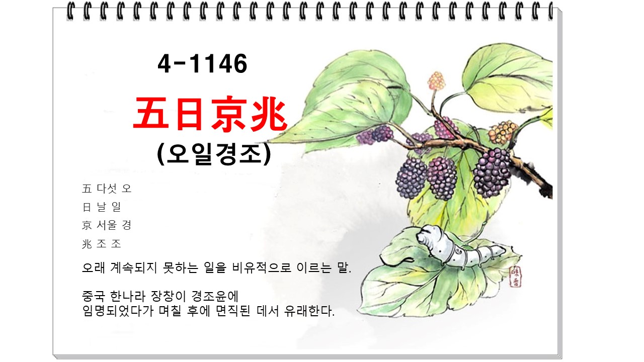 오늘 배울 내용은 '五日京兆' ' #한탄 ' 에 관한 한자성어입니다.