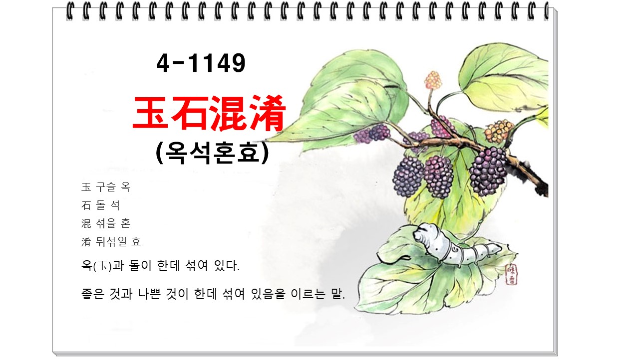 오늘 배울 내용은 '玉石混淆' ' #기타 ' 에 관한 한자성어입니다.