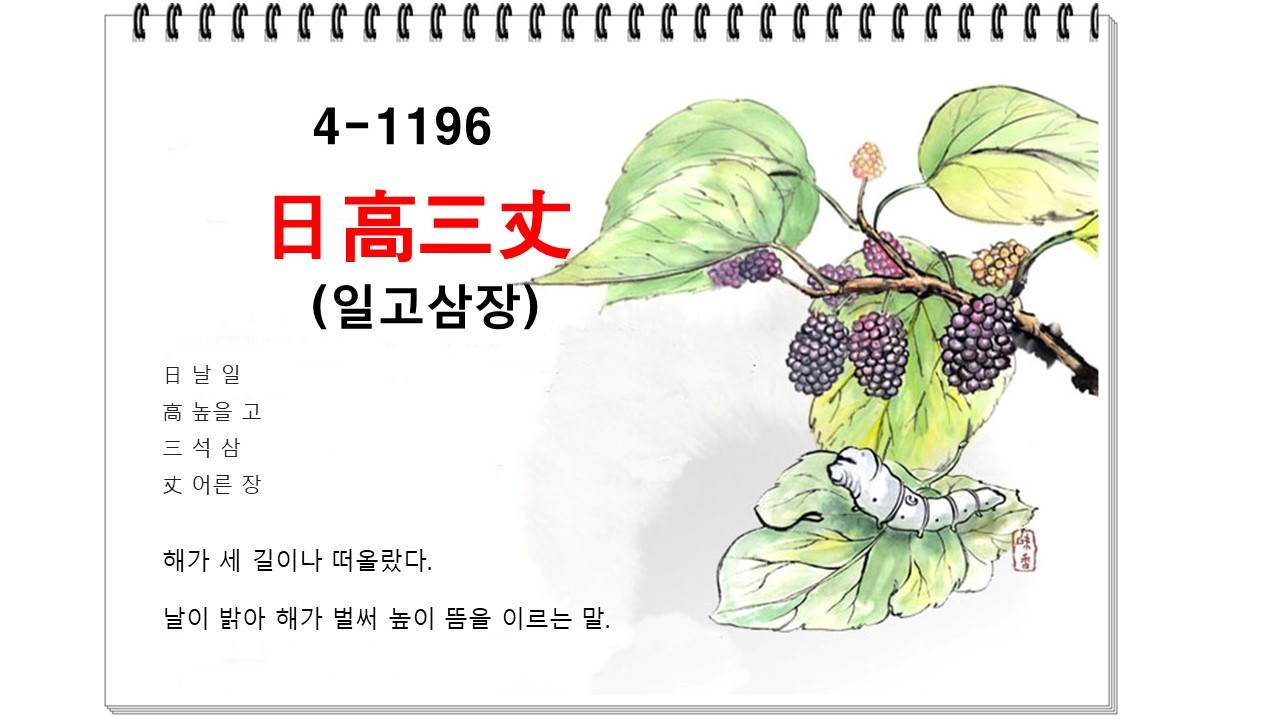 오늘 배울 내용은 '日高三丈' ' #기타 ' 에 관한 한자성어입니다.