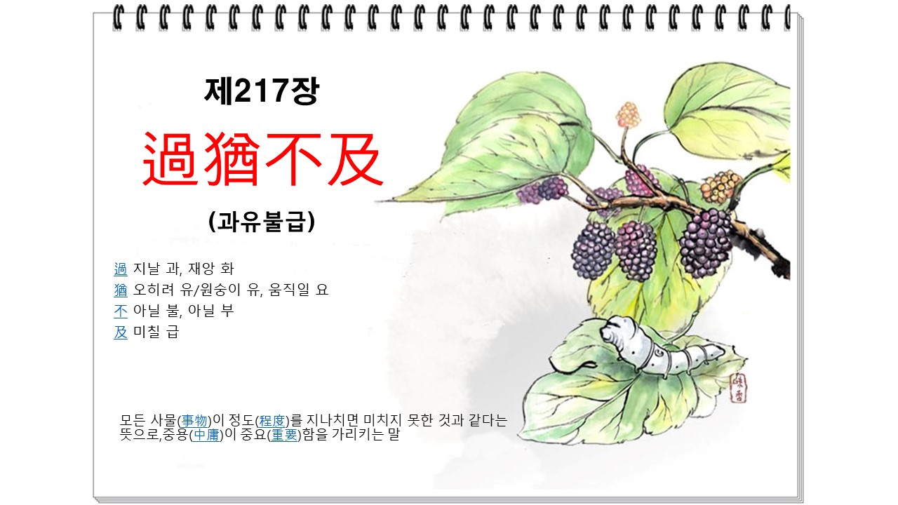오늘은 '과유불급' 으로 ' #교훈 ' 에 관한 한자성어 입니다.