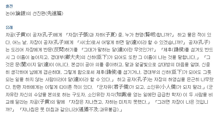 '너무 과하면 오히려 부족함과 같다는 뜻'