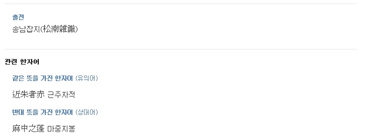 '검은 먹을 가까이 하면 자신도 점점 검어진다는 뜻'