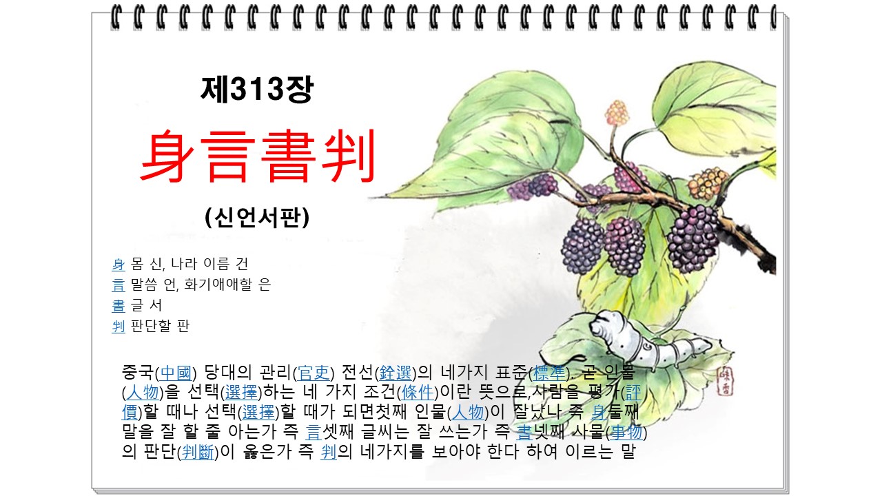 오늘은 '신언서판' 으로 ' #숙어 ' 에 관한 한자성어 입니다. '꼭' #한자쓰기 도 공부하시기 바랍니다.