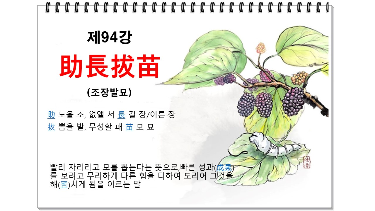 오늘 배울 내용은 '조장발묘' 로 ' #욕심 ' 에 관한 한자성어 입니다.